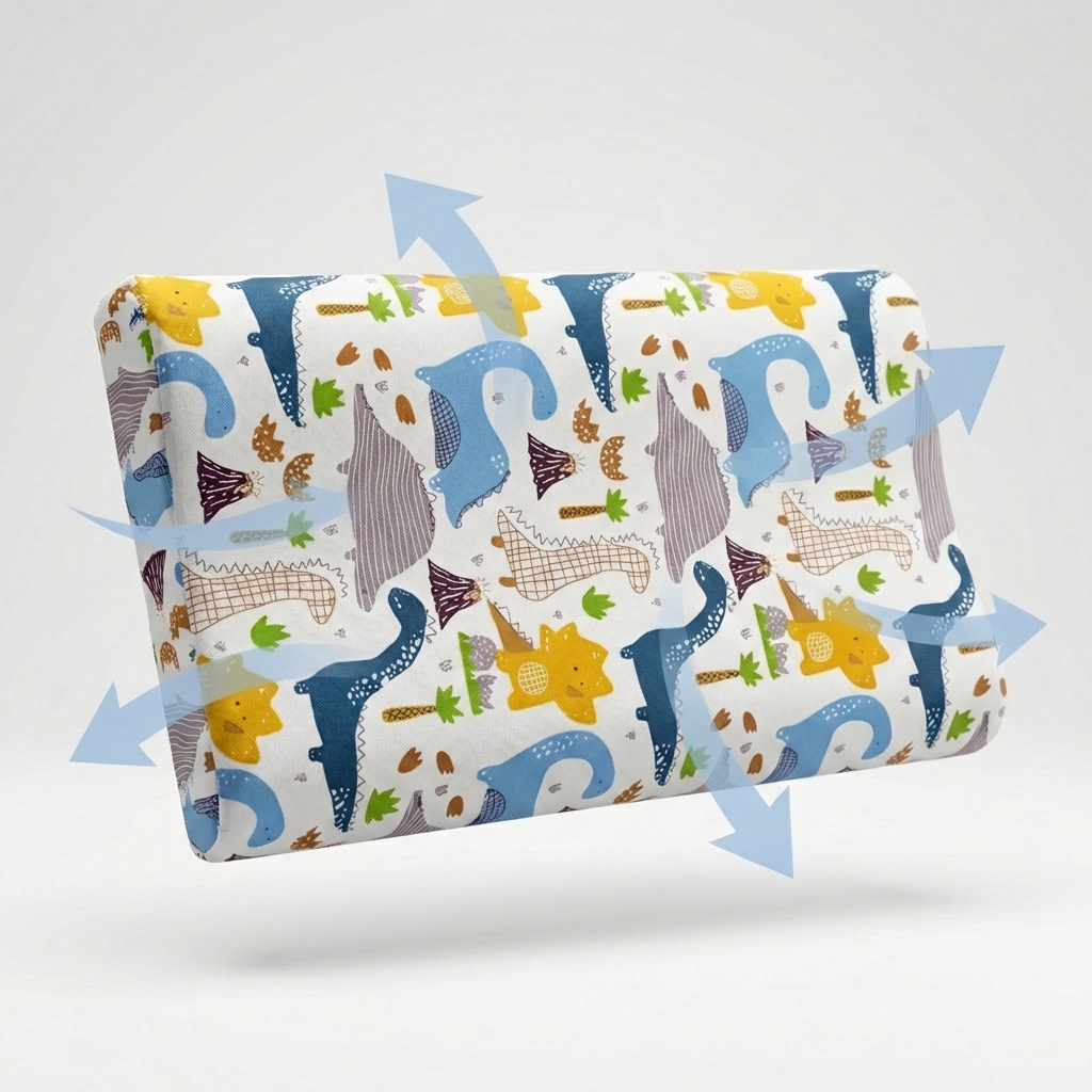 Interiorul din memory foam perforat se adaptează delicat formei capului bebelușului, oferind: